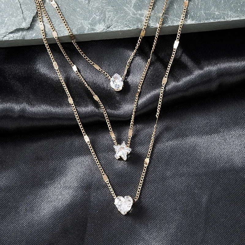 Discover timeless elegance with the Vintage Crystal Love Heart Necklace Set. This multilayered gold necklace combines crystal accents and heart-shaped charm, offering a sophisticated look for any occasion.